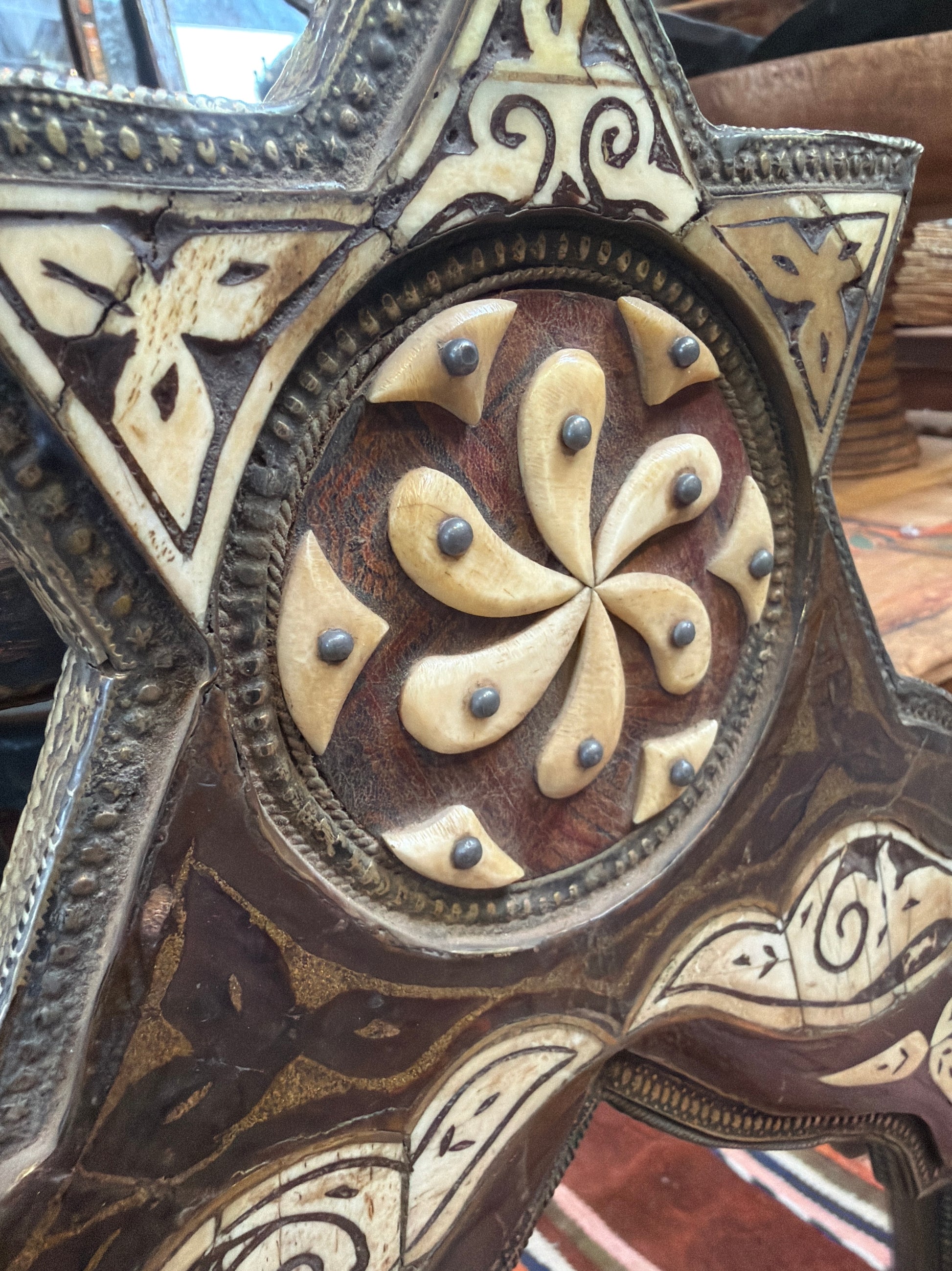 Morocco Medina Bone Inlay & Wood Star Top Mirror – Dark Walnut & Cream