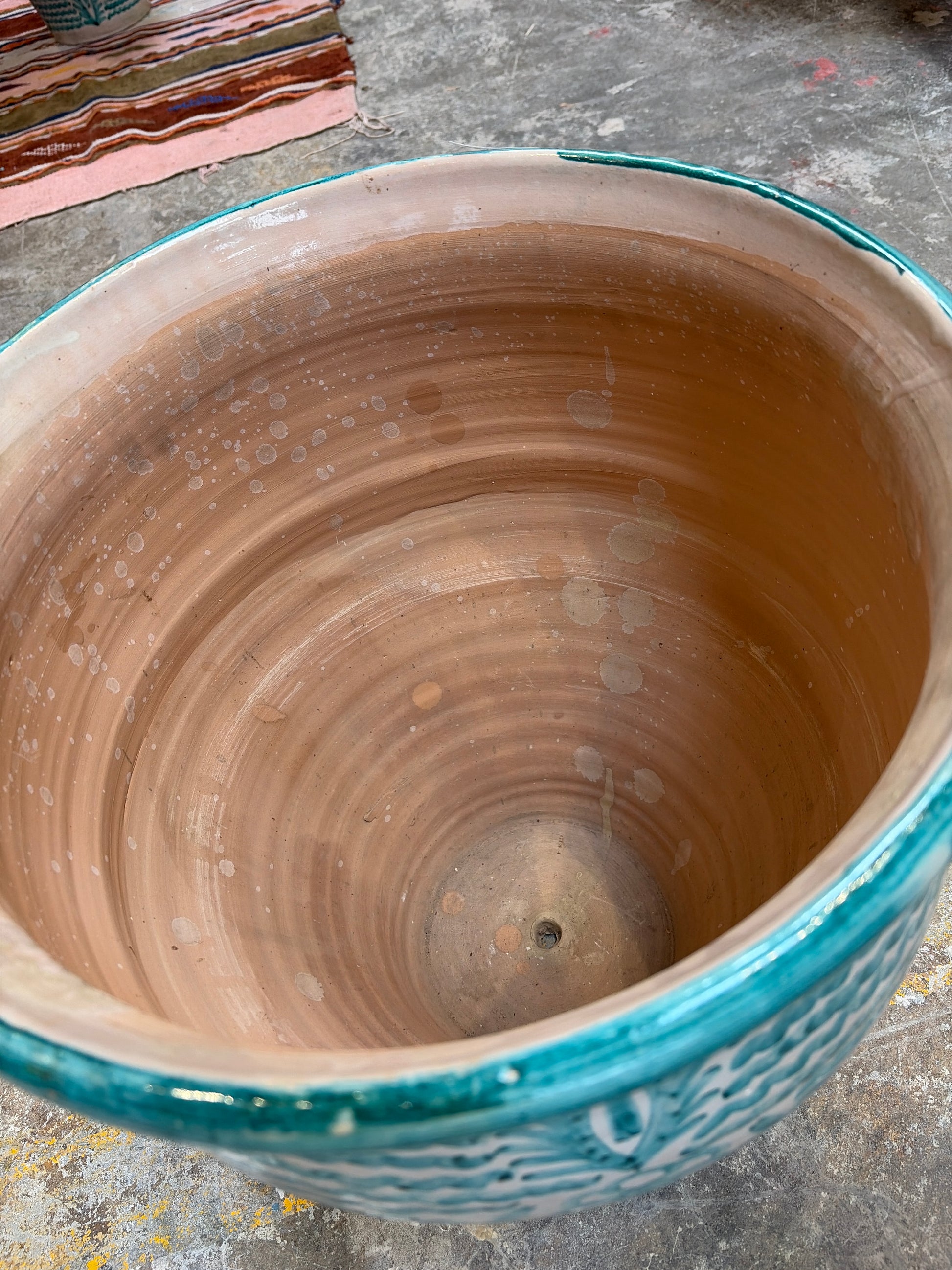 Morocco Medina Hand-Painted Ceramic Planter Vase – Teal Wave & Palm Floral 18"