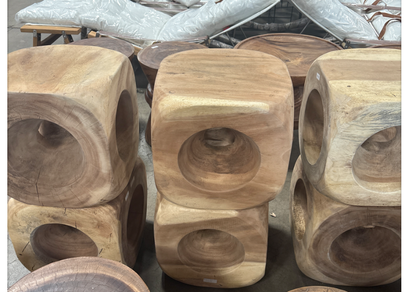 Hand-carved from natural wood, this cube side table features rounded cutouts and sculptural volume. Use it as a stool, side table, or stacked statement. Part of our Bali Contemporary capsule collection.
